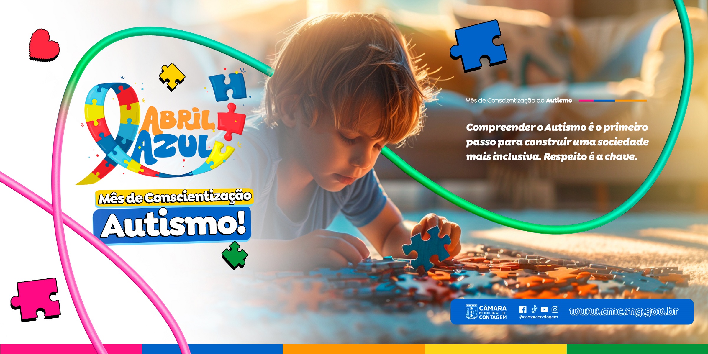 Desde o ano de 2012, a Câmara Municipal de Contagem se engaja, todos os anos, na campanha do “Abril Azul”, de conscientização sobre o Transtorno do Espectro Autista (TEA), motivada pela Lei 4508, que instituiu o Dia Municipal da Pessoa com Autismo. Dessa forma, em abril, são realizadas inúmeras ações e atividades voltadas para a divulgação de informações sobre esse distúrbio de neurodesenvolvimento e para o debate de políticas públicas sobre esse tema.