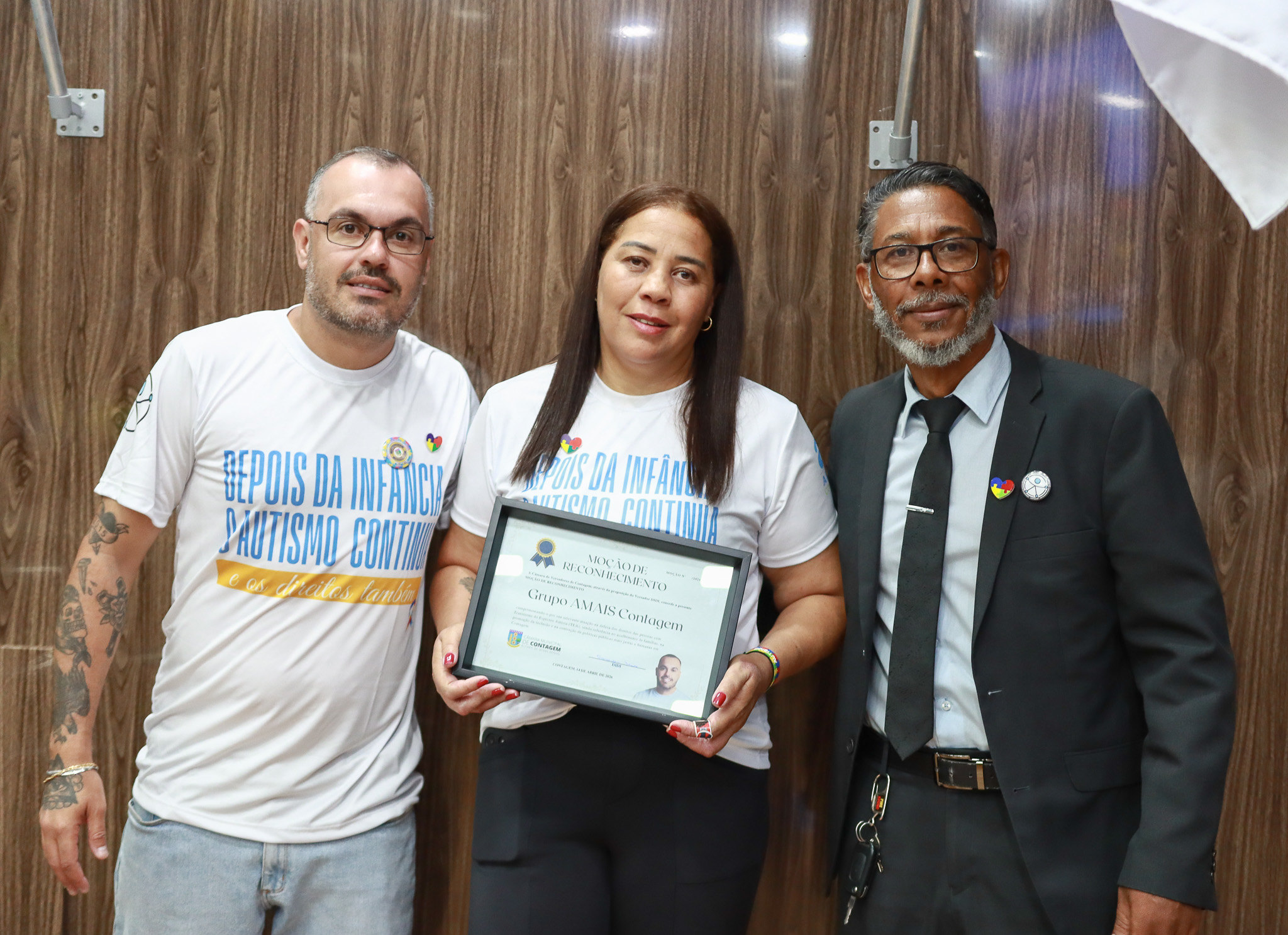 Didi (PRD), que entregou uma moção de reconhecimento ao Amais (foto), e Arnaldo de Oliveira (Solidariedade) enalteceram a luta do grupo por mais informação, conscientização e garantia de direitos, e concitaram todos os vereadores a buscar, juntos com a administração municipal, a implantação do Centro Dia para atender as famílias de pessoas com TEA.